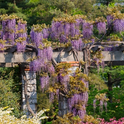 Known for its intoxicating fragrance, ‘Black Dragon’ Wisteria is a strong-growing climber perfect for creating a spectacular performance on a trellis, fence, pergola or wall. Gorgeous, dark purple blooms hang in 18-inch flower clusters from its twining vines and are extremely attractive to bees and butterflies. A real show-stopper, ‘Black Dragon’ is sure to transform any landscape into an elegant work of art.