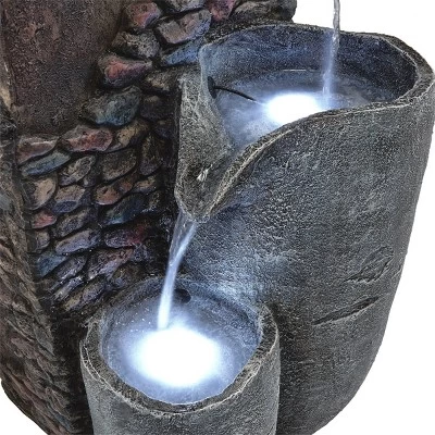- CASCADING FOUNTAIN: Combines the look of rustic pottery and natural-looking stones.