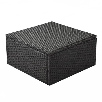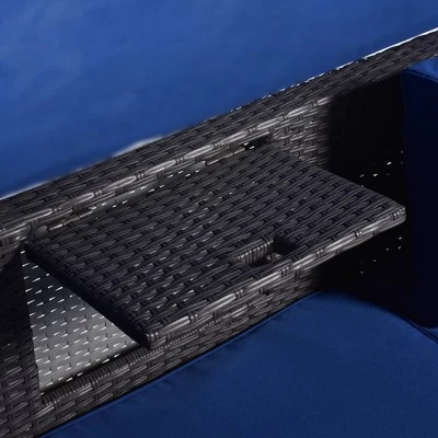 4pc Outdoor Wicker Rectangle Daybed With Canopy & Cushions – Blue – GODEER