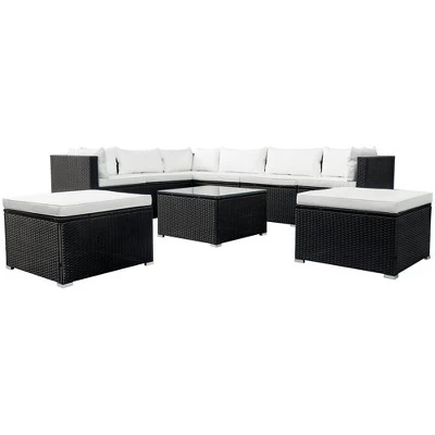 - 【9 Pieces Set Include】Comes with 3 corner sofa, 3 armless sofa, 1 coffee table with tempered glass top, 2 ottomans, providing relaxation for up to 8 persons.