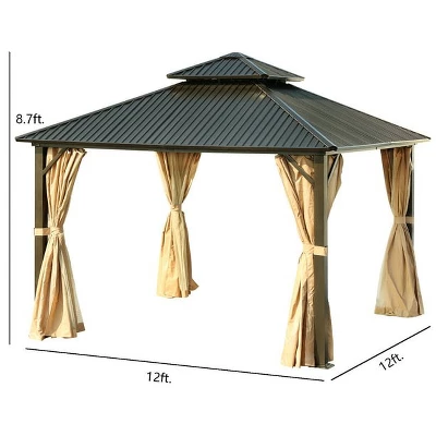 Aoodor 12’x 12′ Aluminum Gazebo With Mosquito Netting And Curtain