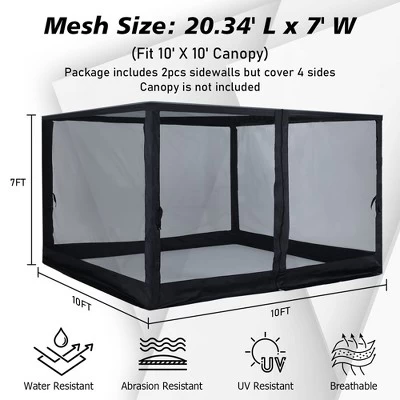 Aoodor Canopy Mesh Sidewall Replacement With 2 Side Zipper For 10′ X 10′ Pop Up Canopy Tent (Mosquito Net Only)