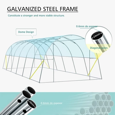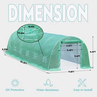 Introducing the Aoodor Large Walk-in Green House. Featuring doors for ventilation and warmth, this greenhouse is made with high-quality materials to withstand harsh weather. Its sturdy frame ensures stability, while the water-resistant and UV-protected cover keeps your plants safe. Easy to install with included accessories. Protect and nurture your plants with this reliable greenhouse.