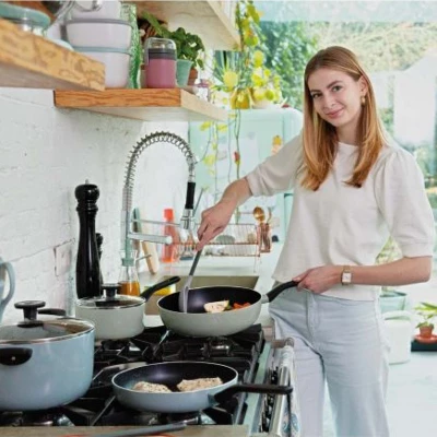 Morning eggs or fries with steak for the whole family, this 11″ frying pan stands by the entire family in the kitchen. The Aluminum body that guarantees a fast and even heat distribution, while the high quality non-stick coating allows you to cook with little to no oil and guarantees an easy food release and clean up. On top of that, the frying pan can be used on any kind of hob, induction included. The glossy phenolic resin handle provides you with the convenience of moving the pan easily and safely. The matching colours of this sage and slate range allow you to combine the different pans in both colours.