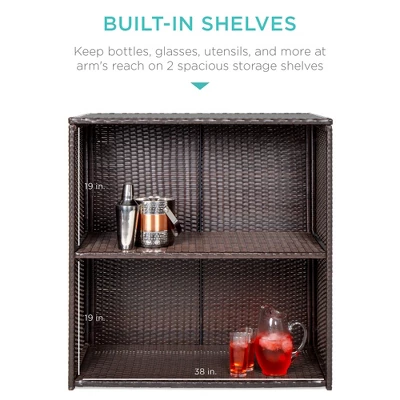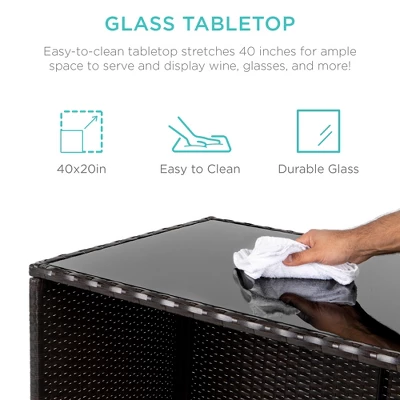 Best Choice Products 3-Piece All-Weather Wicker Bar Table Set For Patio, Backyard W/ 2 Stools, Glass Tabletop – Brown