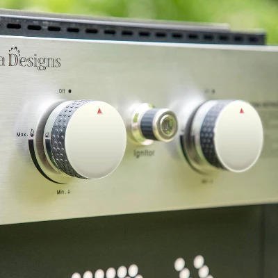 - Stainless steel control panel, 2 burners with 20,000 BTU