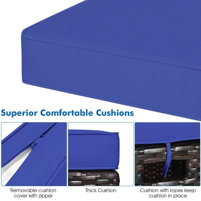 Costway 2PCS Patio Rattan Ottoman Cushioned Seat Foot Rest Coffee Table Furniture Garden Navy