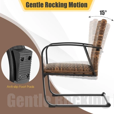 Costway 3 PCS Patio Rattan Furniture Bistro Set C-Spring Chair Padded Seat & Back Pillow