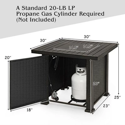 - User-friendly Design: The electronic ignition device perfectly solves the situation of unstable ignition, and the clear built-in control panel is convenient to use. The magnetic suction door with knob is easy to open and close. Besides, there is a fixing ring at the bottom of the fire pit table, which can cleverly hide the propane tank (not included) behind the door.