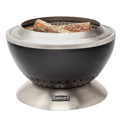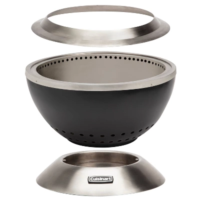 Enjoy the warmth without the smoke with the Cuisinart 24” Cleanburn Smokeless Fire Pit. With open wood fire pits, there is always someone who gets in the way of a cloud of smoke every so often, not anymore! Everyone can gather around and enjoy the warmth from this smokeless style fire pit! Fueled by wood logs or wood chunks, this 24” Cleanburn smokeless design increases the airflow and burning process, so you can have the smokeless function with high heat performance. The bottom vents pull cooler oxygen in, feeding the flames from below while traveling between our innovative curved shaped double walls, causing the air to heat up, while igniting a fire faster. The hot air then travels through holes at the top of the unit, burning off any ash debris or smoke that the flames create, making this a smokeless fire pit. Clean up takes just 2 steps with our patent-pending base ashtray design. Simply remove the fire bowl and lift the base with the integrated handle to empty the ashes. The Cleanburn is crafted with 304 stainless-steel interior bowl, and high-heat black enameled steel outer bowl construction that will last for many great fires in the years to come. Weighing only 22 lbs. makes it easy to adjust its current location by pulling on the integrated handle which is conveniently located in the stainless-steel ashtray base. Gather your friends around the Cuisinart 24” Cleanburn Smokeless Fire Pit and enjoy the warmth while making new memories. The Cleanburn makes you warmer, quicker! (5) Complementary accessories available to enjoy it more! Dimensions are: 24” Wide x 16” Height assembled.
