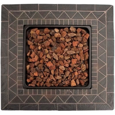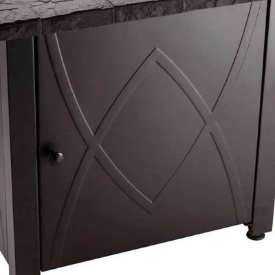 - STYLE: This fire pit table features a handcrafted resin mantel and sleek decorative side panels that add a stylish and modern appearance
