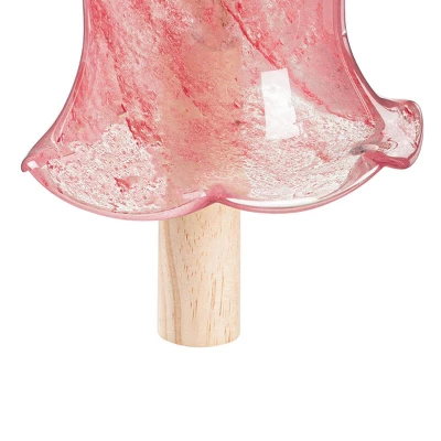 This Art Glass Speckle Pink Floral Shaped Bell Chime will play the sweet music of spring all season long. Featuring a speckled pink design, this floral-shaped bell chime hangs in beauty with a wooden cylinder clapper to create a pleasing sound with each passing breeze. Perfect for your garden or any outdoor space, the bell comes ready to hang by the attached rope. The loop at the top makes display easy on a hook, tree, or anywhere you wish to hear this chime’s beautiful sound. Made of glass, rope, and wood, this stunning piece is outdoor safe and fade-resistant, ensuring it will last season after season. A great gift for yourself or a loved one, this floral bell chime is a true masterpiece because of its mixed-media design and artisanal construction.