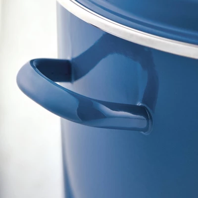 - COOK IN COLOR: The colorful stockpot enamel on steel exterior is stain resistant, and the sturdy steel loop handles provide solid support