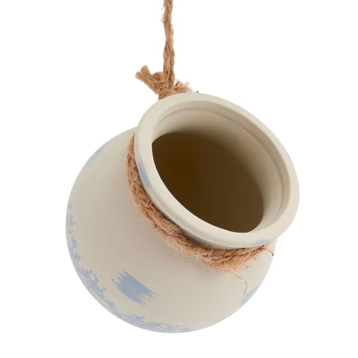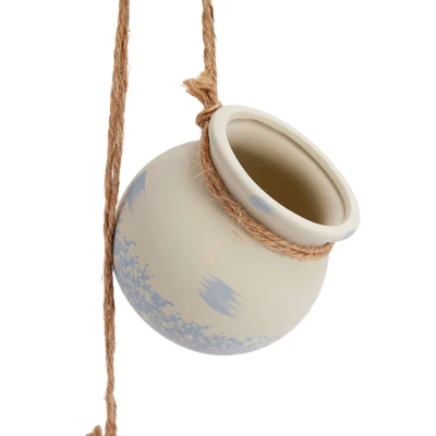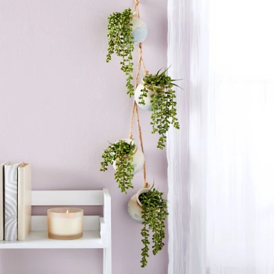 Our ceramic hanging planters are perfect for displaying flowers, herb plants, cacti, or colorful flowers. Use a hook or nail to securely hang in the garden, back yard, front porch, balcony, kitchen, living room, or patio. The jute rope on our planter measures 23 inches, and the small planters each measure 4 inches tall with a 4-inch diameter. The decorative off-white pots will effortlessly blend with your existing modern and rustic home decor.