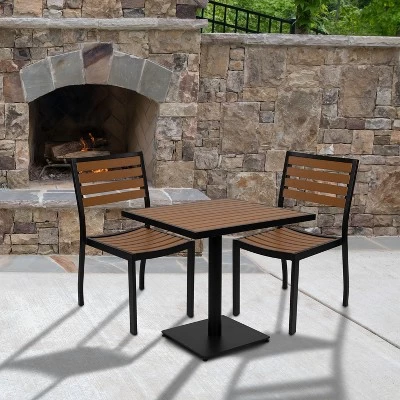 Flash Furniture Lark Outdoor Patio Bistro Dining Table Set With 2 Chairs And Faux Teak Poly Slats