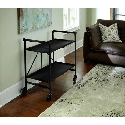 Indoor/Outdoor Folding Serving Cart With Wheels & Shelves – Black – Room & Joy