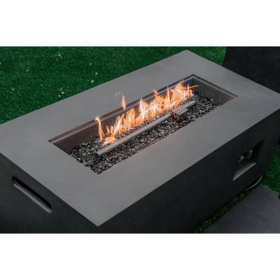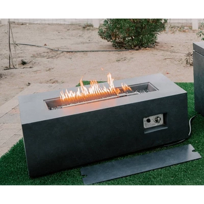 - DURABLE AND STABLE CRAFTSMANSHIP: A simple and elegant rectangle design, this sturdy outdoor propane gas fire pit table features a weather-resistant, made of durable magnesium oxide with a concrete-style finish to have a long lasting color and look beautiful in any backyard setting