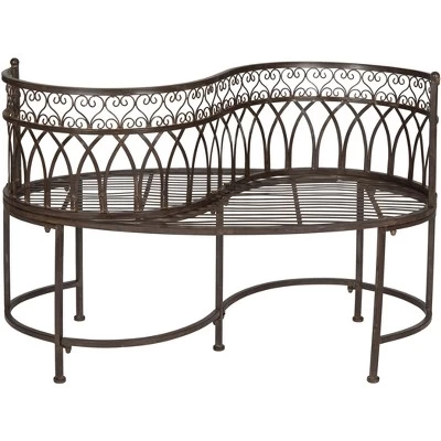 Designed after a Victorian garden staple, this Lara Kissing Bench overflows with vintage charm. Lara’s romantic heart shaped details and flourishing scrolls in antique iron lend any outdoor space an enchanting ambiance. Care Instructions: Store outdoor furniture indoors or cover well when not in use. Remove wooden furniture from standing water. Dust regularly with small brush or vacuum. Spills should be taken care of immediately before they harden or stain with a slightly dampened sponge. Do not use bleach solutions.