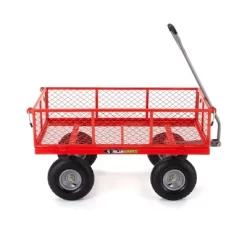 Gorilla Cart 800lbs. Capacity Heavy Duty Durable Steel Mesh Flatbed Garden Utility Wagon – Red