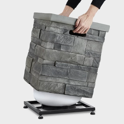 Enjoy versatility made easy with the Real Flame Ledgestone 20 lb. Tank Cover. Constructed from durable, fiber-concrete finished in gray ledgestone, this cover is designed to coordinate perfectly with the Ledgestone Fire Table. This convenient piece for your outdoor entertainment area seamlessly conceals your 20-pound propane tank and makes an ideal side table for holding drinks, appetizers, and more for any alfresco gathering. Plus, this cover works equally well for storing a backup tank.