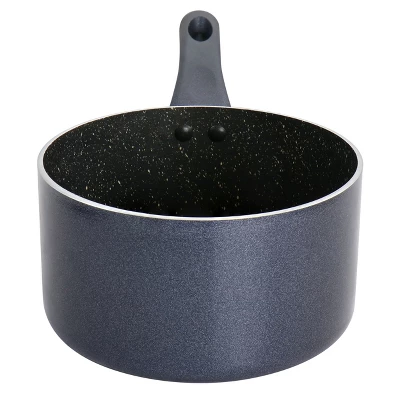 The Oster Anetta 1.5 Quart Aluminum Nonstick Saucepan in Navy Blue is an everyday cookware necessity. Constructed with durable aluminum, this saucepan has a nonstick interior coating for easy food release and clean up. Soft touch bakelite handle and knob stay cool while you cook, making it safe and easy for you to transport from burner to burner while you prepare the rest of your meal. Treat yourself to quality meals and better quality of life.