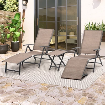 Crestlive Products Outdoor Indoor Adjustable Terrace Pool Deck Chair and Table Set is practical and practical for your everyday life. The durable aluminum frame and textile fabric are sure to be reliable patio furniture in your home, and the chair can hold up to 270 pounds. What’s more, it has an 8-position adjustable backrest and folding legs design, and the table can also be folded for easy portability and storage. Enjoy your life!
