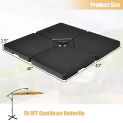 Costway Patio 4pcs 13L Cantilever Offset Umbrella Base Heavy Duty Outdoor Square Black