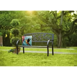 Evergreen Beautiful Springtime Colorful Blue Fish Shaped Metal Garden Bench – 44x20x36 In
