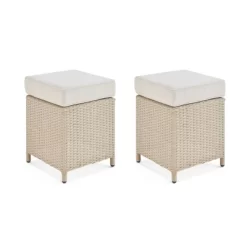 2pk All-Weather Wicker Canaan Outdoor Square Stools With Cushions Brown – Alaterre Furniture