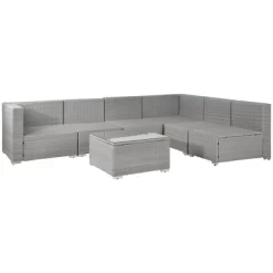 6pc Outdoor Wicker Set With Loveseats, Sofa, Chair, Coffee Table & Bench – Beige – GODEER