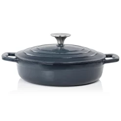 MegaChef 2 Quart Round Enameled Cast Iron Braiser Pan In Dark Blue