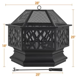 Yaheetech 24in Outdoor Hex Fire Pits Firepit Bowl With Spark Screen & Poker For Patio Backyard