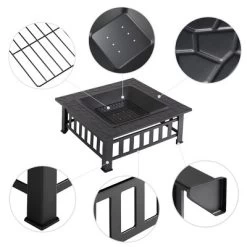 Yaheetech 34in Fire Pit Table Outdoor Patio Fire Pits Square Steel Stove With Mesh Screen And Cover