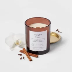 Clear Colored Glass With Woodwick And Brass Metal Inset Lid Pumpkin Spice – Threshold™