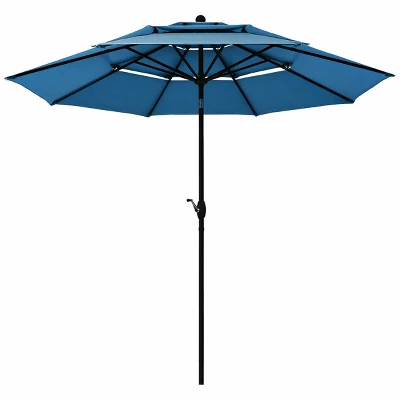 Our 3-tier outdoor umbrella is an ideal option to create wonderful outdoor relaxing time with great shade.Solid aluminum frame makes the umbrella durable and not too heavy when move it.Comes with dual wind vents, the umbrella not only adds fashion and elegance to the patio umbrella but good for air circulation.You can easily use the crank to adjust the tilt of the patio umbrella for maximum shade.Assembly is easy and can be done without tools.Do not hesitate to buy it!