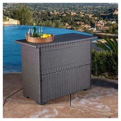The Christopher Knight Home Trinidad Wicker Bar is the ideal companion to any patio set, complementing most outdoor decor. Made from sturdy weather resistant polyethylene wicker, it will not only withstand the elements, but also survive heavy use throughout the years. With 3 shelves there is plenty of room for your glasses, drinks and barware and a generous bar top is ideal for serving drinks. Impress your guests with this Christopher Knight Home Trinidad Wicker Bar. A purchase you will not regret.