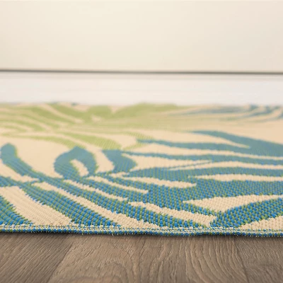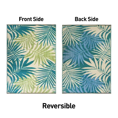 Liven up your indoor or outdoor décor with this tropical reversible straw rug. It features a floral palm design and vibrant colors.It is easy to maintain by rinsing with a garden hose with soapy water and air drying.For indoor or outdoor use. This collection offers area rugs that are suitable for all indoor/outdoor spaces. Great for Patios, RVs, camping, patio decks, sunroom, playrooms, pet mats, kid’s mats, traveling, picnics, casual hikes, beach trips.